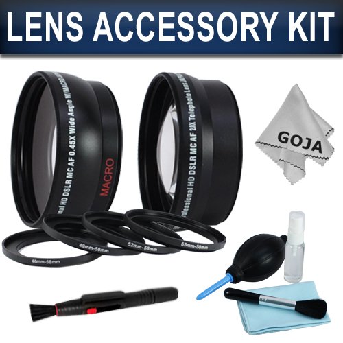 Essential Kit for CANON Rebel (T3i T3 T2i T1i XT XTi XSi), CANON EOS (1000D 600D 550D 500D 450D 400D 350D 300D 60D) - Includes: 58MM Wide Angle & 2.2X Telephoto High Definition Lenses + Cleaning Kit (w/ Lens Cleaning Pen) + Adapter Ring Set + Premium Goja Microfiber Cleaning Cloth Feature